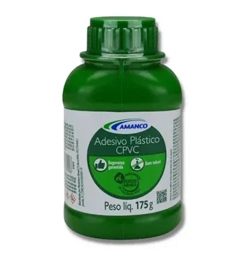 Adesivo CPVC em frasco com 175g, indicado para união de tubos e conexões CPVC em sistemas hidráulicos de água quente e fria.