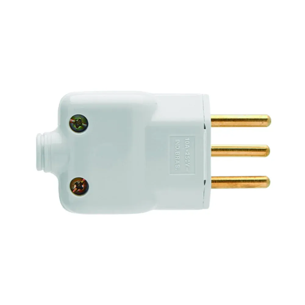 Pino Macho 3P com Prensa 10A é indicado para instalações que exigem maior capacidade elétrica e resistência. Com prensa-cabo integrado, garante maior firmeza e segurança na conexão, evitando folgas e rompimentos nos fios.