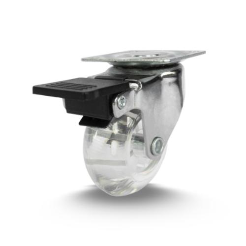 O Rodízio 138 Cristal com freio oferece fácil movimentação e travamento seguro, ideal para cargas de até 30 kg.