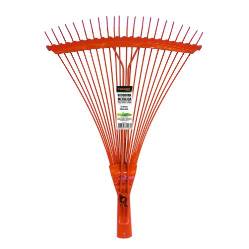 A Vassoura Grama Metal possui arames reguláveis, permitindo ajustar a abertura para recolher folhas, galhos e resíduos com muito mais facilidade.